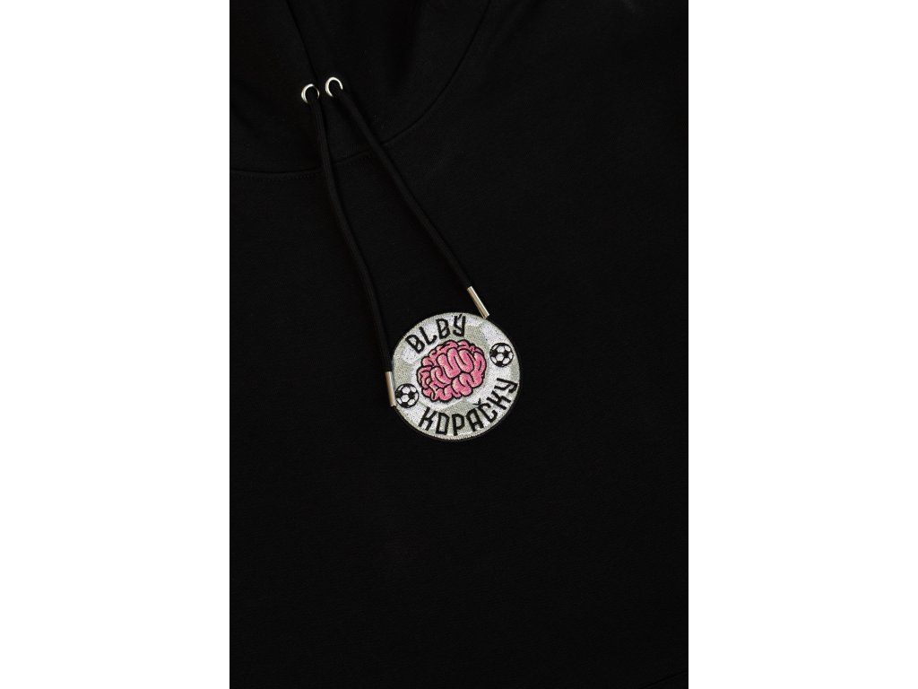 Černá mikina s vyšívaným logem BlbýKopačky100% bavlna, pokyny k péči uvnitř mikiny